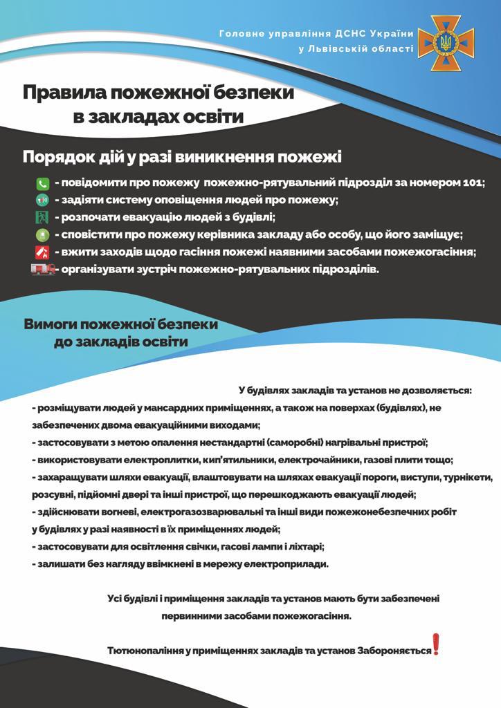 Інструкція з пожежної безпеки в закладі освіти